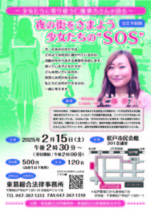 東葛総合法律事務所友の会では、2月15日(土)に Colabo代表 仁藤夢乃さんを講師にお迎えし、下記のとおり講演会を開催いたします。